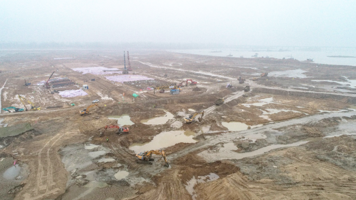 淠河六安市城南水利枢纽工程项目施工现场 摄影:崔徐波