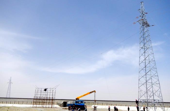 | 送出线路跨越喀和铁路施工(余志平 摄影) |