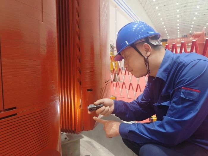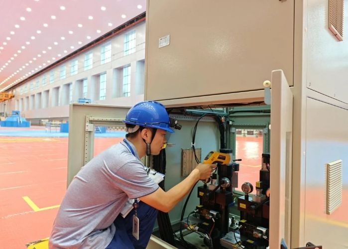 ▲ 三峡集团所属长江电力葛洲坝电厂工作人员,正在对2号机组进行元器件温度检查。