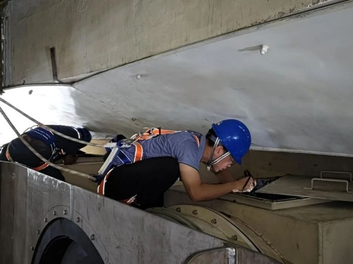 ▲ 三峡集团所属湖北能源综合能源公司东湖燃机检修部热工班工作人员,在2号余热锅炉炉顶进行日常检修维护工作。