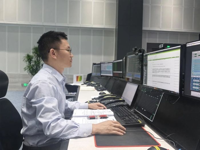 ▲ 三峡集团所属长江电力乌东德电厂运行部工作人员,正在昆明调控大厅记录运行值班日志。