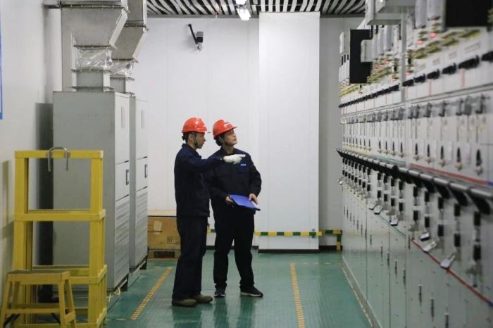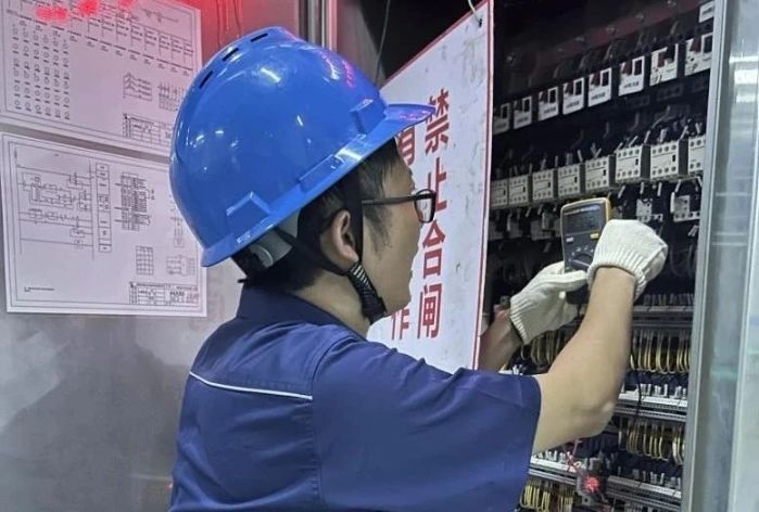 ▲ 三峡集团所属长江电力葛洲坝电厂电气维修部保护分部工作人员,正在巡检冷却器控制盘运行情况。