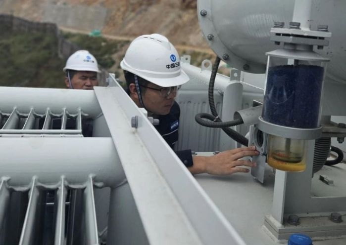 ▲ 三峡集团所属长江电力白鹤滩电厂工作人员,正在厂区内开展设备巡检工作。