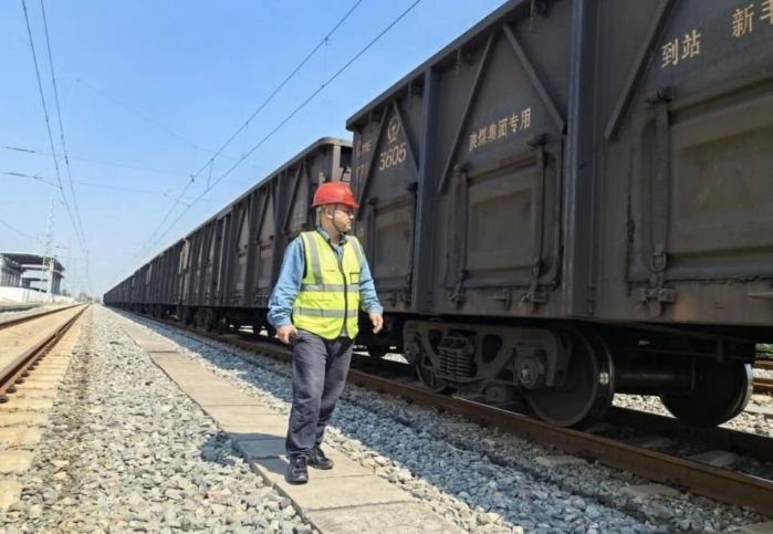 ▲ 三峡集团所属湖北能源省煤投公司荆州煤港驻站员,正在对排空车辆的车门加固、车体等情况逐一检查,并核对编组顺序表,确保节日期间货运安全。
