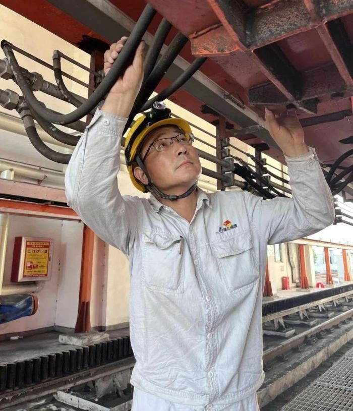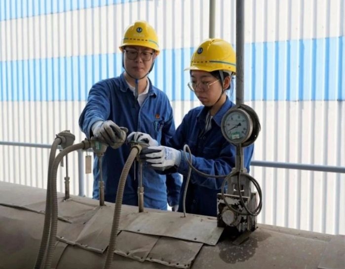 ▲ 三峡集团所属湖北能源襄阳宜城发电公司工作人员,正在进行燃料接卸设备启动前检查,确保电厂输煤安全。