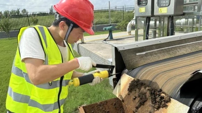 ▲ 安徽和县经开区水质净化厂里,三峡集团所属长江环保集团芜湖水务公司机修人员正在对厂内设备进行维护保养。
