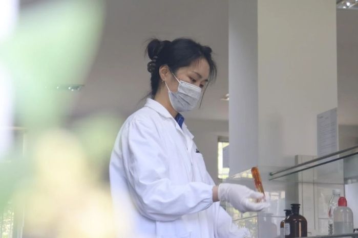 ▲ 在安徽芜湖朱家桥水质净化厂里,化验员手持烧杯、量筒,检测着进出水质,关注厂区运行状况。
