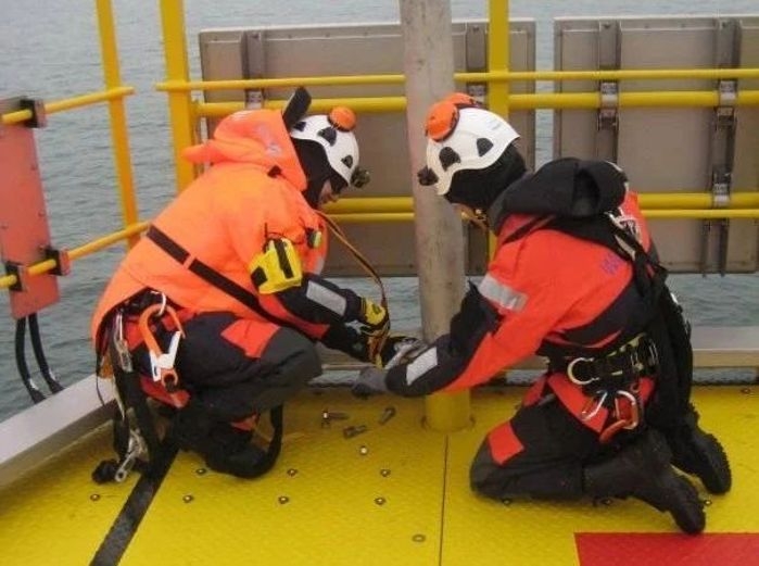▲ 在德国梅尔海上风电场上,三峡集团所属三峡国际三峡欧洲公司工作人员正在开展安全巡查工作。