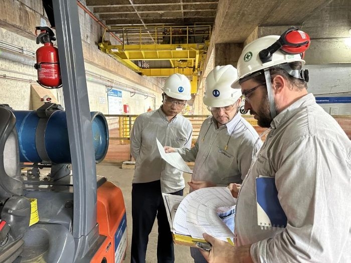 ▲ 三峡集团所属三峡国际三峡巴西公司员工正在朱比亚电站进行安全检查。