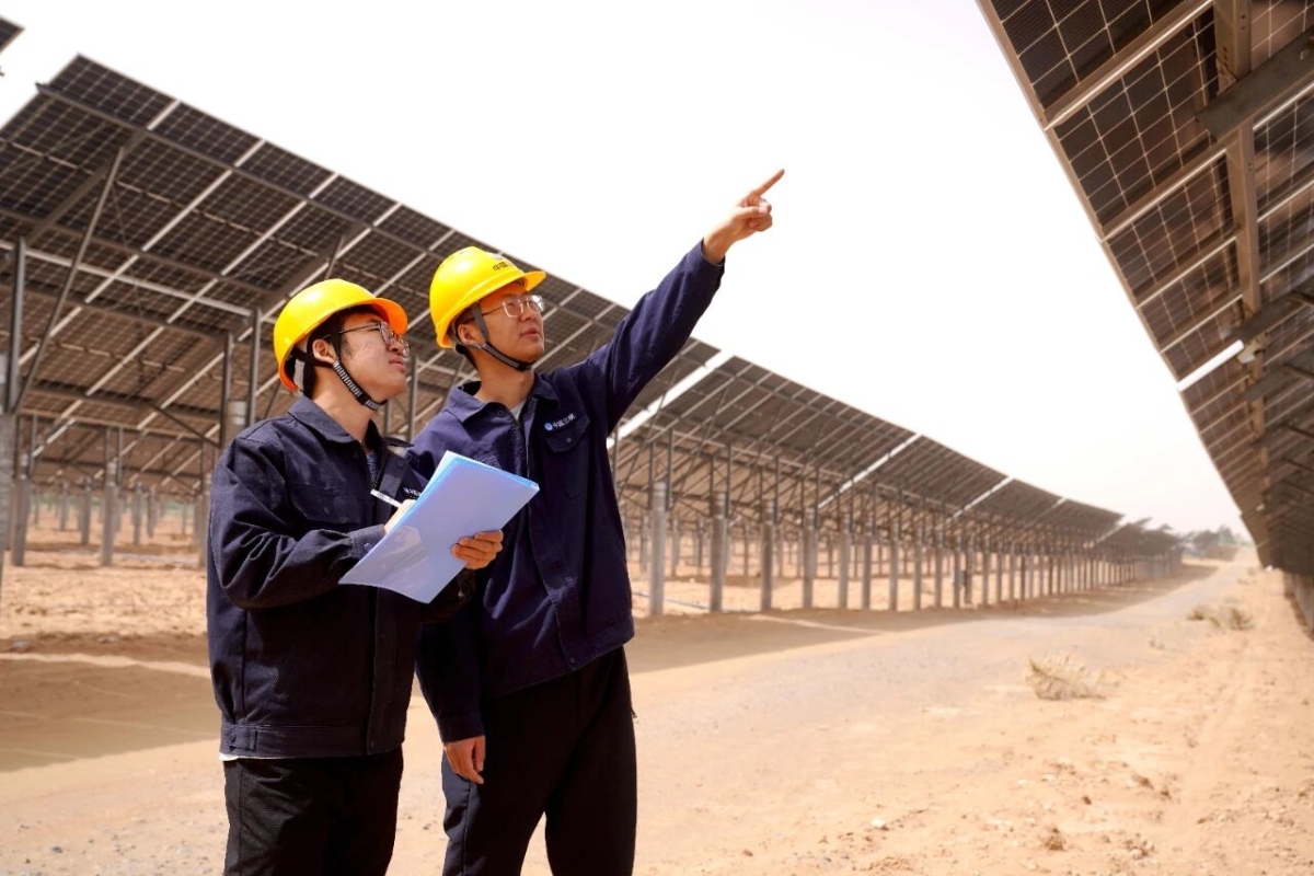 从光伏一期电站的运维,到光伏二期电站的并网发电,王旭见证着库布其大基地的“成长”。“刚刚并网运行的设备如同蹒跚学步的孩童,尤其需要用心呵护。”王旭这样描述去年底光伏二期电站并网后对设备进行调试时的经历。这段时间里,他与运行团队已经完成数千次参数校准,为后续稳定的电力生产打好了基础……
