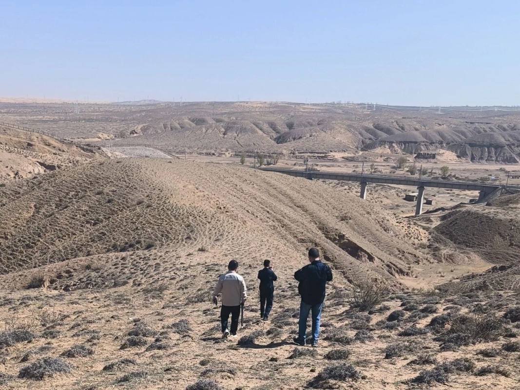 找路,是让他们最为头疼的事情。“最怕遇到‘望山跑死马’的地形。”技术员牛浩远手机相册里的照片记录了这种困境——直线距离500米的目标机位,往往需要绕行沙丘沟壑,徒步一小时方能抵达。他们用沙海荒地中的日行三万步,校准规划图上的每一个风机坐标。
