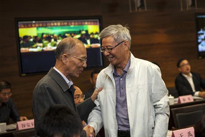 集团公司成立二十周年座谈会上老同志亲切交谈。(常征 摄)