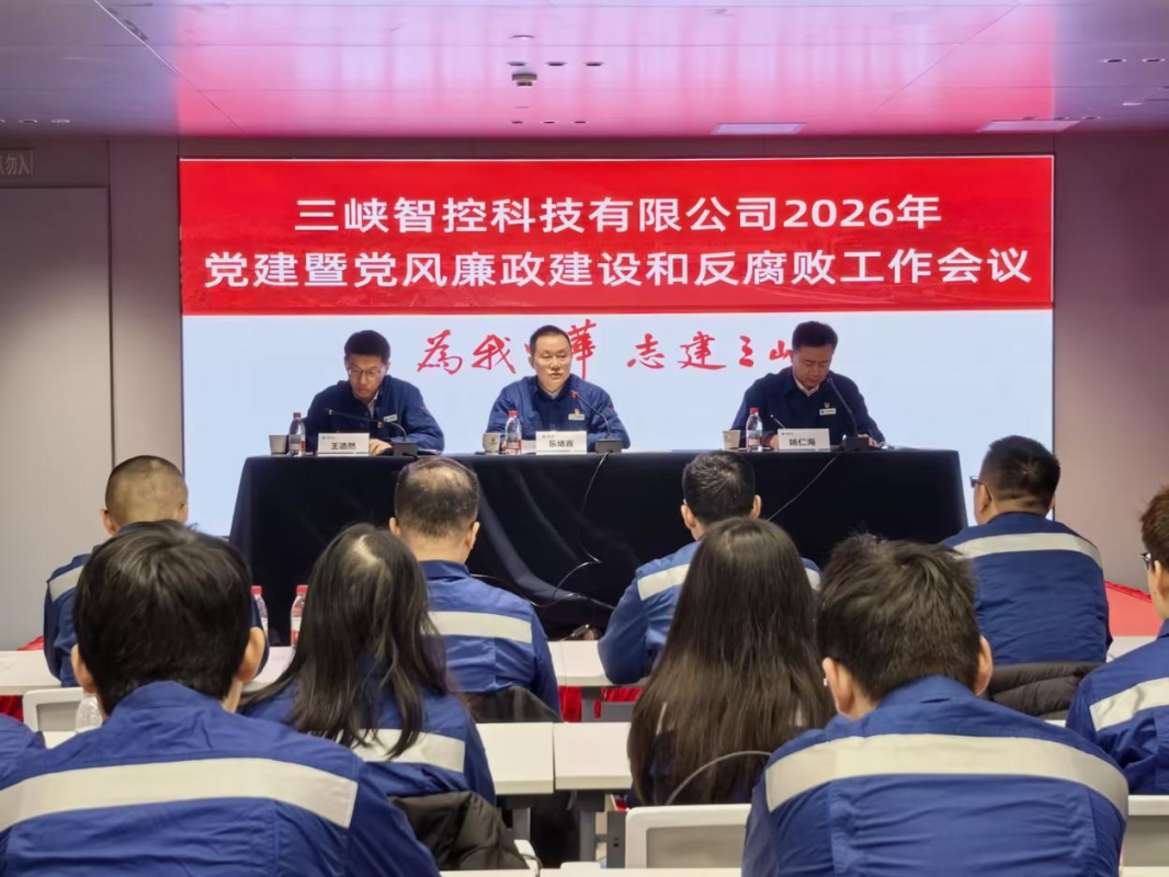 在2026年党的建设暨党风廉政建设工作会,党支部副书记、总经理姚仁海作党建工作报告,纪检委员、副经理王浩然作党风廉政建设和反腐败工作报告。会议指出,2025年公司党的各项建设取得一定成效,在2026年工作中,三峡智控党支部将坚持以习近平新时代中国特色社会主义思想为指导,在筑牢思想根基上展现新担当,在推动高质量发展上实现新突破,在涵养清风正气上彰显新作为,在狠抓工作落实上体现新作风,奋力开创公司党建工作和党风廉政建设新局面。